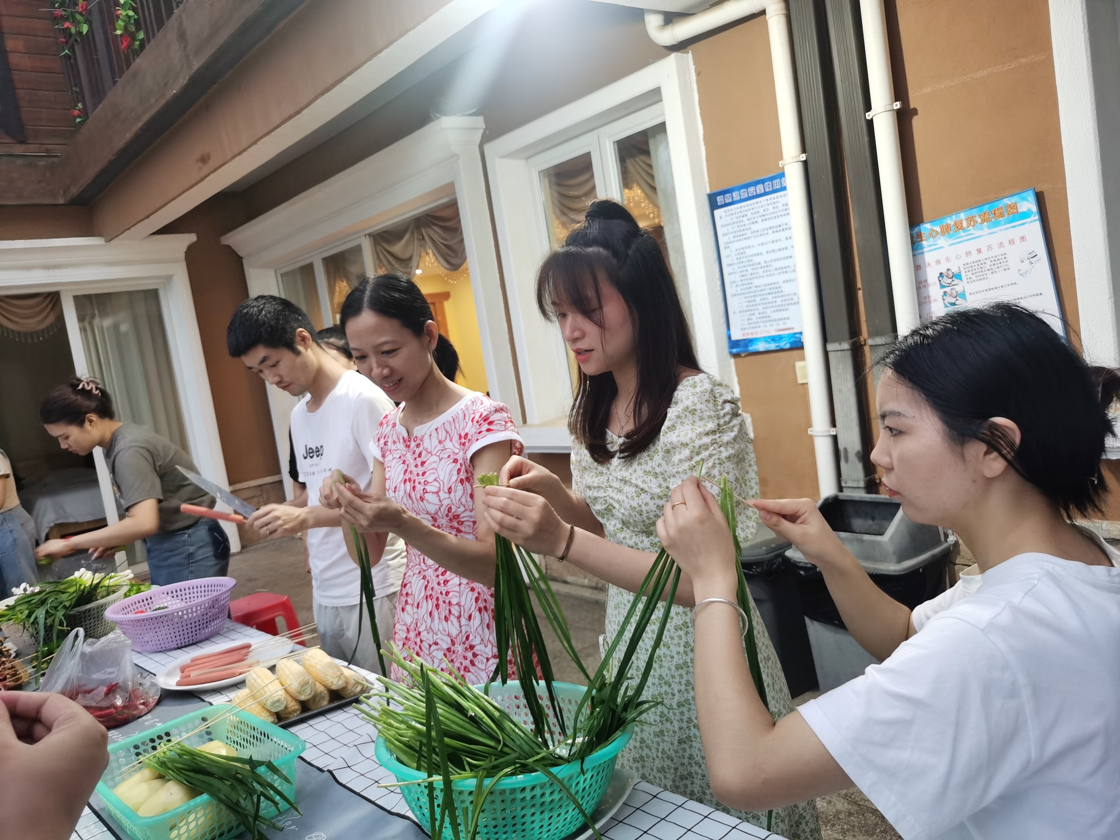 午夜燒烤、高歌、暢飲,群體晚會也開始了,為了讓大家吃上新鮮的食物,所有食材公司統一選購,原材料加工,同時也能加強伙伴們的動手能力與互動性