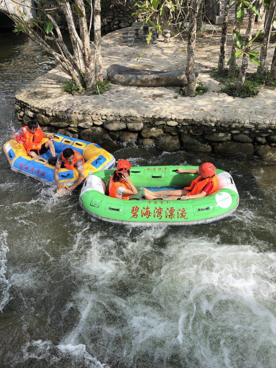 如此炎炎夏日,來到了碧海灣又怎能少得了緊張刺激,又清涼的漂流。漂流河道經漂流行家精心設計打造,保留原始風貌,渾然天成,全長3.8公里,總落差達182米,漂流落差達160多處,巨大高速落差達17米,長80多米。