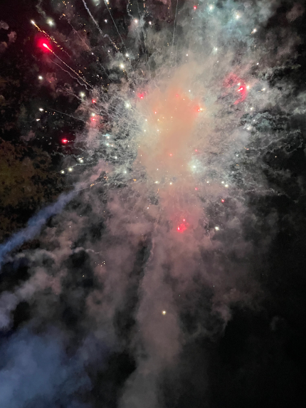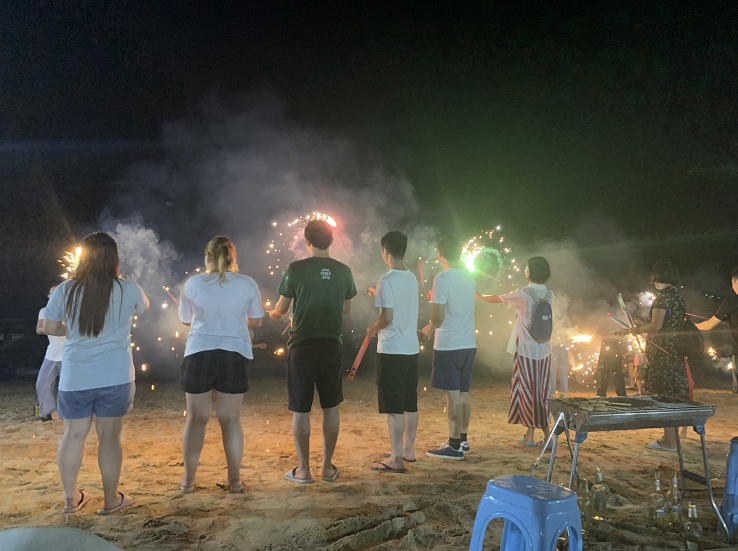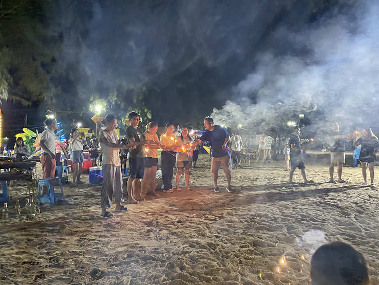 煙火代表一種歡快的日子,在這樣的時光中當然是少不了的,吃累了,喝飽了,唱歌的唱歌,放煙花的放煙花,大家都帶著不嗨不睡的態度,放開了玩,仿佛回到了童年