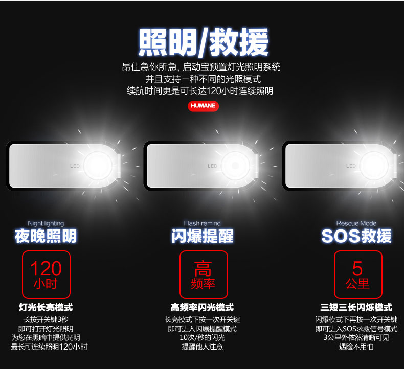 連續照明長達120小時,不用摸黑前行,為你的安全加分